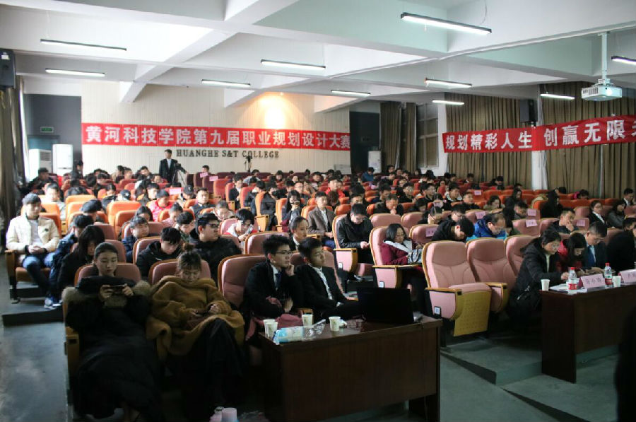 12月28日下午,由黄河科技学院学生处主办、新闻传播学院学生会承办的第九届大学生职业规划设计大赛决赛在创业大讲堂举行。学生处处长陆竹棠、就业办主任王国宾、新闻传播学院党总支书记苏春辉出席本次比赛。教育部全国万名优秀创新创业导师、河南省科技厅创业导师、合众智业集团高级咨询师、河南校友会执行会长兼秘书长吴永生,团中央KAB创业教育(中国)项目培训师、河南省“互联网+”大学生创新创业大赛特邀评委、黄河科技学院创业指导教研室主任张红玉,国家二级心理咨询师、河南省心理健康教育专家、心理健康健康教育教研室主任卢琰,新闻传播学院播音与主持艺术系副主任石拓,全球职业规划师、机械工程学院马小玲担任评委。各学院行政办主任、就业指导课教师及各学院辅导员及学生代表近200人观看了比赛。
